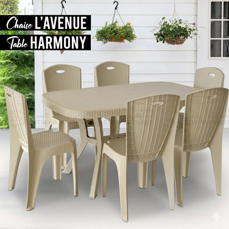 Table De Jardin Rectangulaire Harmony - Format: Rectangle - Table Rectangulaire léger et facile à ranger, s’adaptera à tous les espaces de votre maison ou jardin pratique utiliser a votre intérieure et extérieure - Poids: 9.4 kg - Dimension: 81.7 x 136.7 x 72 Cm - 6 Fauteuil Bistrot L'avenue: idéale pour la détente à l'extérieur. C'est une chaise profilée très légère et facile à transporter avec une grande ouverture qui s'adapte parfaitement au corps - Dimension: 42.3 x 45.7 x 88.6 Cm - Couleur: Grège